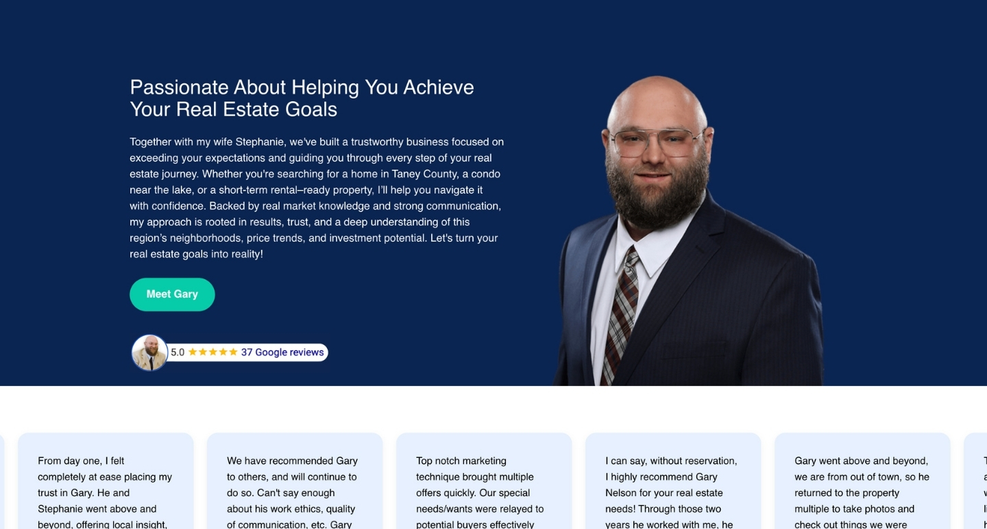 Gary’s online presence didn’t reflect the level of care he gives his clients. His website was barebones, his social media inconsistent, and most of the marketing fell on his shoulders. We started with a clean website and expanded it into a full IDX platform where clients can search the MLS, view listings, and connect with him. We also built consistent branding so everything works together. Today, his site ranks on page one of Google, his emails see strong engagement, and clients often reach out already confident and ready to work with him.